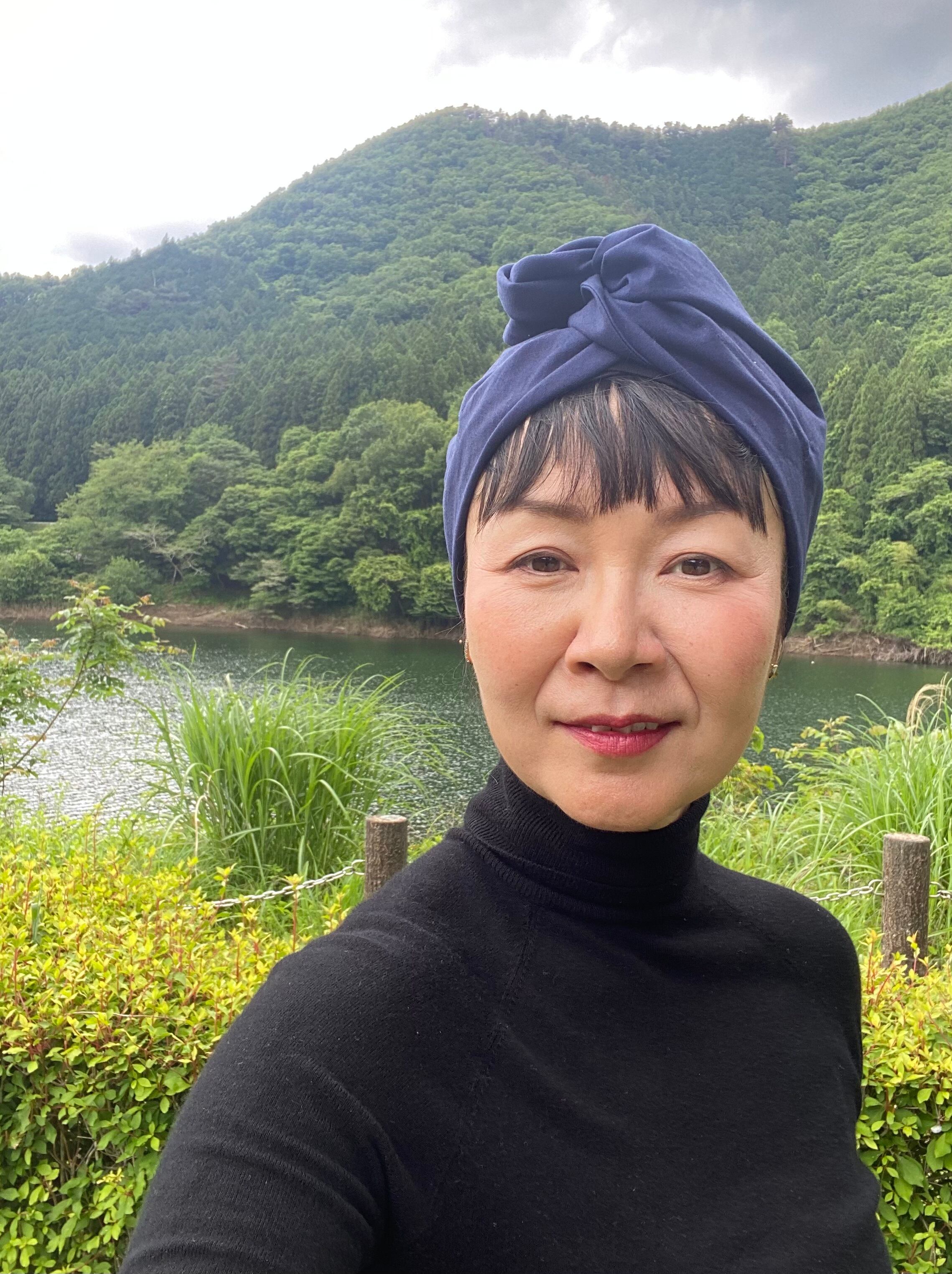 OrganicCotton紺桔梗色 ワイヤー入りターバン